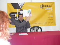 ací teniu l'entrevista d'"Escriptors al plató" que dirigia Manolo Gil a la passada Fira del Llibre (l'any al youtube està equivocat, no pertany al '12 sinó a aquesta primavera: coses que passen...). És curiós que a l'entrevista de la Fira passada també plovia bóts i barrals, a mars, a poalades, cats and dogs... Així és la primavera!